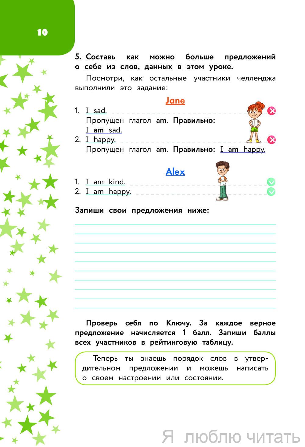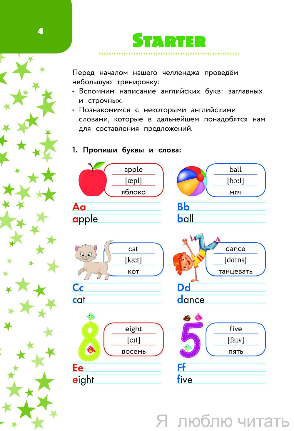 Алина Меженная - преподаватель английского языка с 10-летним опытом работы в школе. Автор предлагает уникальную игровую методику выполнения заданий в формате челленджа. Вместе с ребенком в игре участвуют Алекс и Джейн, очаровательные персонажи этой книги. С помощью интересных упражнений ребенок научится писать не только отдельные слова, но и целые предложения. Пособие состоит из 17 увлекательных уроков, а также дополнено приложением с ребусами, кроссвордом, раскраской и карточками для вырезания. Ваш маленький ученик с нетерпением будет ждать каждого занятия! Издание предназначено для занятий с детьми младшего школьного возраста.