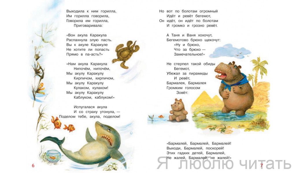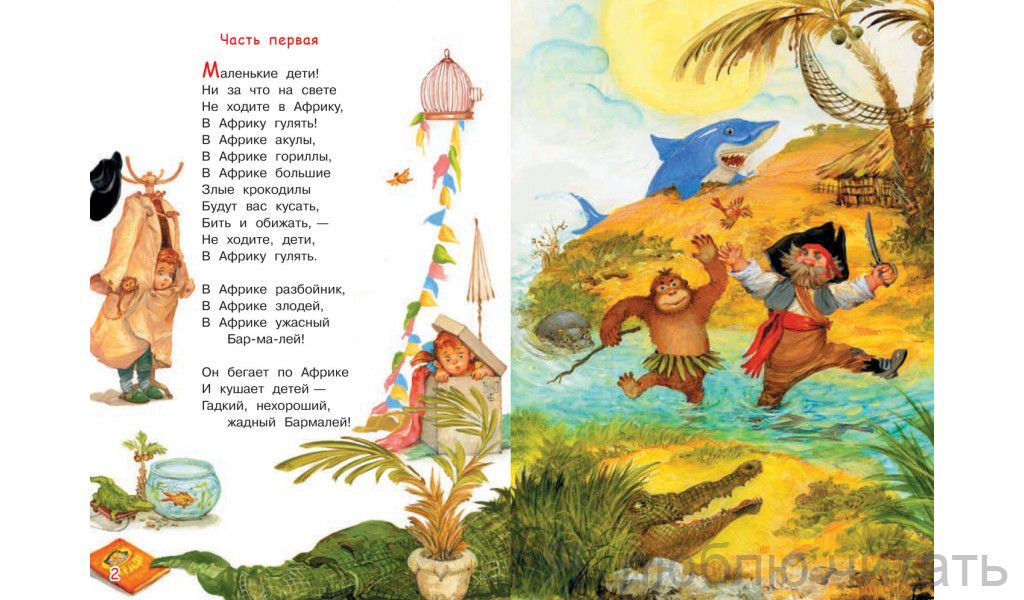 Известная сказка в стихах о том, как маленькие дети Таня и Ваня убежали от мамы с папой в Африку и попались в руки ужасному злодею – Бармалею, который любит кушать маленьких детей. На помощь детям приходит добрый Айболит. Чем всё кончится, дети узнают, прочитав эту сказку, и поймут, что надо быть послушными и добрыми.