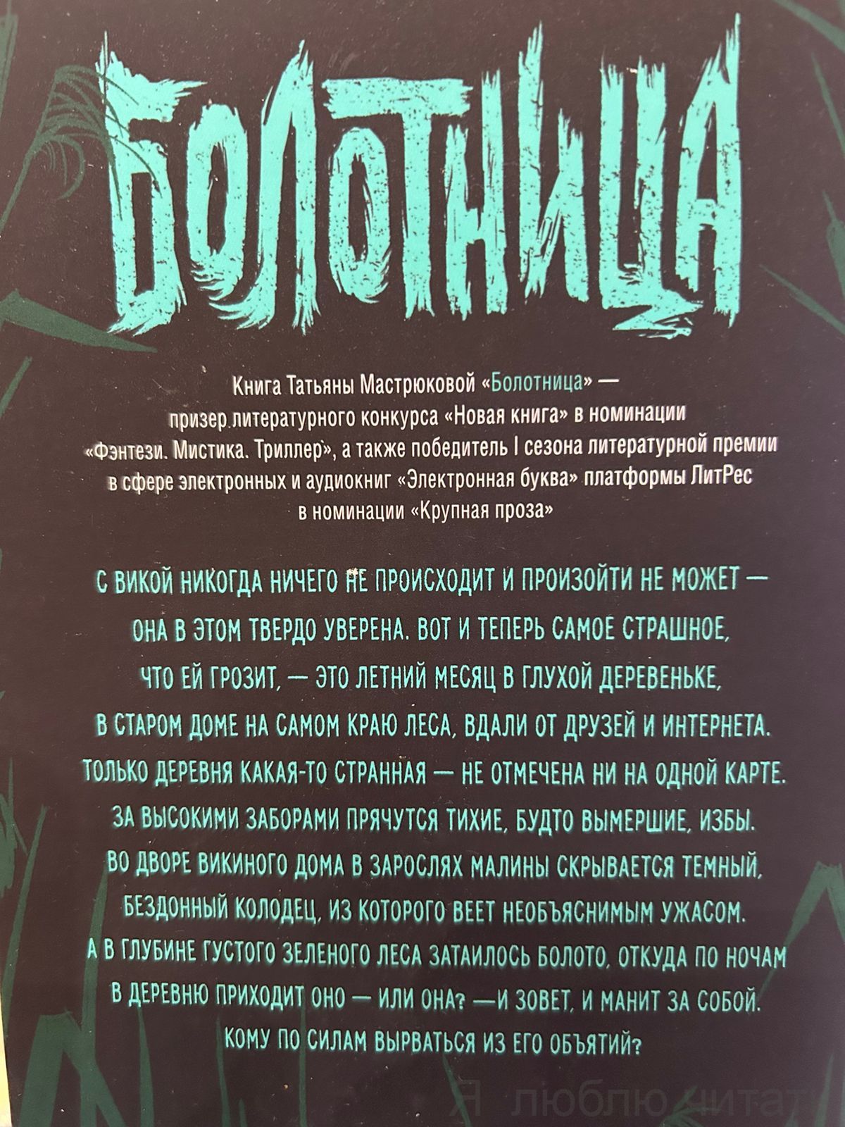 Вике предстоят летние каникулы в глухой деревеньке вдали от друзей и интернета. Только деревня какая-то странная – на картах не значится, да и местные жители не спешат показываться. Наоборот, за высокими заборами прячутся тихие, будто вымершие, избы. Во дворе в зарослях малины скрывается темный, бездонный колодец, из которого веет необъяснимым ужасом. А в глубине густого зеленого леса затаилось болото, откуда по ночам в деревню приходит оно – или она? – и зовет, и манит за собой…