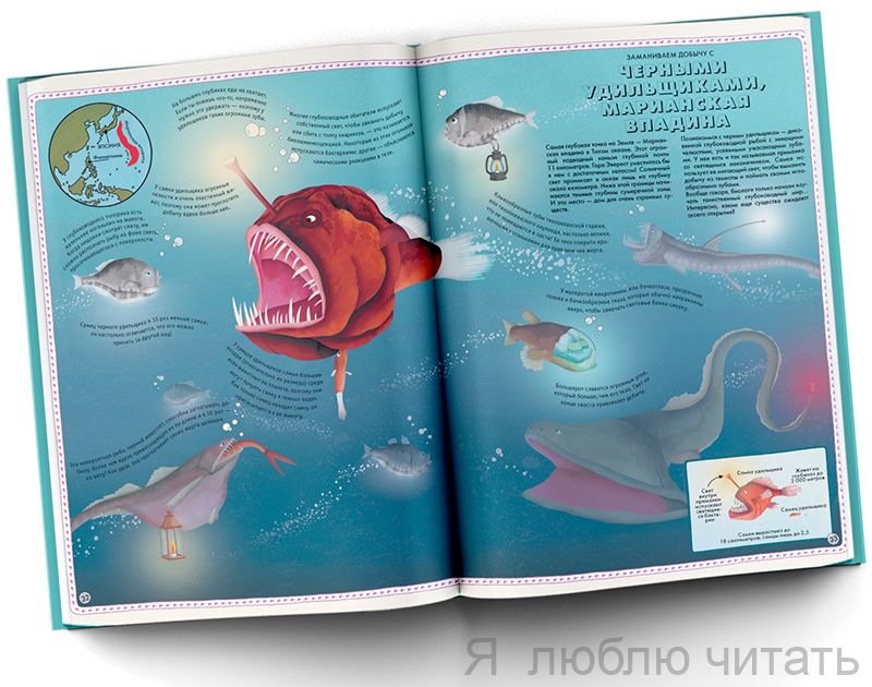 В этом атласе для детей 5-9 лет спрятано огромное количество разнообразных живых существ. Всех их объединяет одно - они не могут прожить без воды. Богатейший подводный мир нашей планеты в картинках, фактах и компактных ироничных текстах понравится каждому ребенку. Здесь нет лишней информации, а все данные достоверны и интересны. Это большое путешествие по морям и океанам Земли, от холодных арктических широт до теплых экваториальных вод. Везде кипит жизнь! Почему крокодилы не живут в холоде? Куда может заплыть кожистая черепаха? Правда ли, что акула-молот любит кокос? Изучая этот атлас, ребенок найдет ответы на самые оригинальные вопросы и тут же захочет узнать больше о родной планете. Кто знает, может, в вашем доме растет новый Жак-Ив Кусто?
