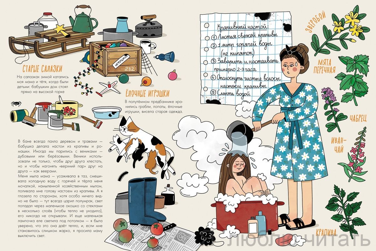 Эта книга — дань уважения беззаботному детству, проведенному у бабушки. Автор и художник — Евгения Кишмария — с любовью воссоздает атмосферу деревенского быта, подробно описывая предметы и традиции, которые формировали жизнь ее большой семьи. Словно в старом фотоальбоме, мы посмотрим страницы семейной истории, погружаясь в увлекательные воспоминания о большом старом доме, наполненном уютом и теплом.