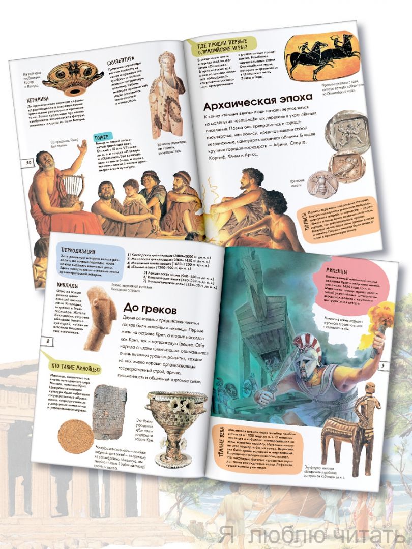 Книга "Древняя Греция" из серии "Детская энциклопедия" отправит юных читателей в прошлое и проведёт увлекательную экскурсию по Древней Греции. Греческая культура оказала огромное влияние на современный мир, и немало греческих традиций живы до сих пор. Эта энциклопедия прекрасно подойдёт для первого знакомства с Древней Грецией, её традициями, культурой, обычаями и историей. На её страницах читатель найдёт абсолютно всё: от одежды и развлечений до религии, искусства, архитектуры, земледелия и государственного устройства. Лоредана Агоста и Энн МакРей, авторы этой книги, в увлекательной форме рассказывают о сложном и простом, делятся наиболее интересными фактами и не дают читателю заскучать. А красочные иллюстрации делают каждую страницу ещё более занимательной.