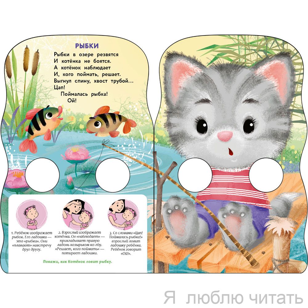 Эта познавательная обучающая книжка на картоне с вырубкой в виде котенка обязательно понравится вашему малышу. А текстильные лапки помогут оживить персонаж и сделать чтение интересным и полезным
