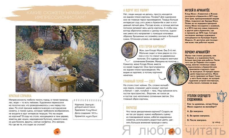 Почему импрессионистов так назвали? Создавали ли творцы свои картины только на пленэре? Были ли среди импрессионистов женщины? Какие сюжеты нравились художникам? На страницах этой книги вы увидите и самые знаменитые картины, и скульптуры импрессионистов. А еще прочитаете про зарождение импрессионизма, познакомитесь с самыми известными творцами, их биографиями и особенностями стиля, рассмотрите ключевые образы произведений, а также узнаете, чем техника живописи импрессионистов отличалась от приемов работы академических художников. Эта книга — проводник в мир искусства. Благодаря ей вы станете знатоком одного из крупнейших течений в живописи XIX–XX веков!