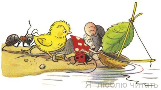 Пошли однажды друзья гулять, пришли на речку - тут-то и оказалось, что плавать из них умеет только Лягушонок. Но Цыпленок, Мышонок, Муравей и Жучок не расстроились и быстро придумали выход! А что они сделали и как им помогла дружба, вы узнаете из этой книжки!