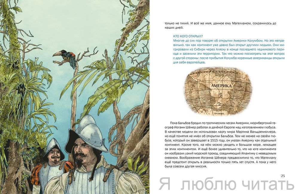 В 1519 году флотилия из пяти кораблей, на борту которых находилось 265 моряков, отправилась от атлантического побережья Испании к легендарным «Островам пряностей». Её капитаном был португалец Фернан Магеллан — блестящий мореплаватель и целеустремлённый исследователь. 6 сентября 1522 года одинокое судно, изъеденное червями, возвратилось на родину. На борту находилось 18 измождённых матросов. Магеллана среди них не было… Обычная исследовательская экспедиция Магеллана превратилась в грандиозное кругосветное плавание длиной в три года. Эта книга отправляет нас в большое путешествие, полное опасных приключений и великих открытий!