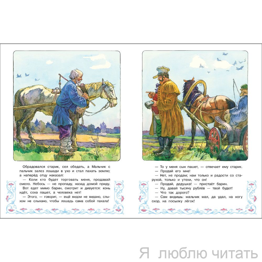 Русская народная сказка “Мальчик с пальчик” в обработке Алексея Толстого с иллюстрациями одного из лучших художников-графиков советского периода Павла Григорьевича Пономаренко. Его работы можно смело назвать шедеврами книжной графики. За свои иллюстрации П. Г. Пономаренко не раз был удостоен медалей на Международных выставках-конкурсах книги.