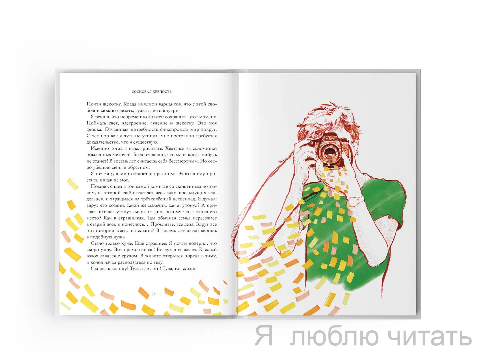 Когда тебе четырнадцать, то дикая жизнь на даче — это настоящее приключение! Герой этой повести впервые остаётся в полном одиночестве, присматривает за хозяйством, пока вся семья жарится в душном летнем городе. Но у него с собой чистый скетчбук, который можно наполнить рисунками, и старый дедовский фотоаппарат на тридцать шесть кадров. Идиллию дачного одиночества слегка нарушает приезд лучшего друга, но с ним даже интереснее гонять на великах по посёлку и купаться в озере. В одной из таких поездок друзья обустраивают собственное секретное логово, Сосновую крепость.