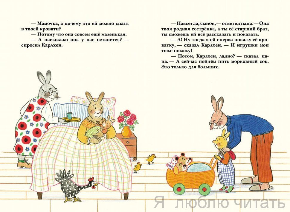 Книга очень помогла моей трехлетней дочке, когда у неё родилась сестренка. Мы готовились заранее, часто читали эту книгу и малышка оказалась готова к появлению нового члена семьи.