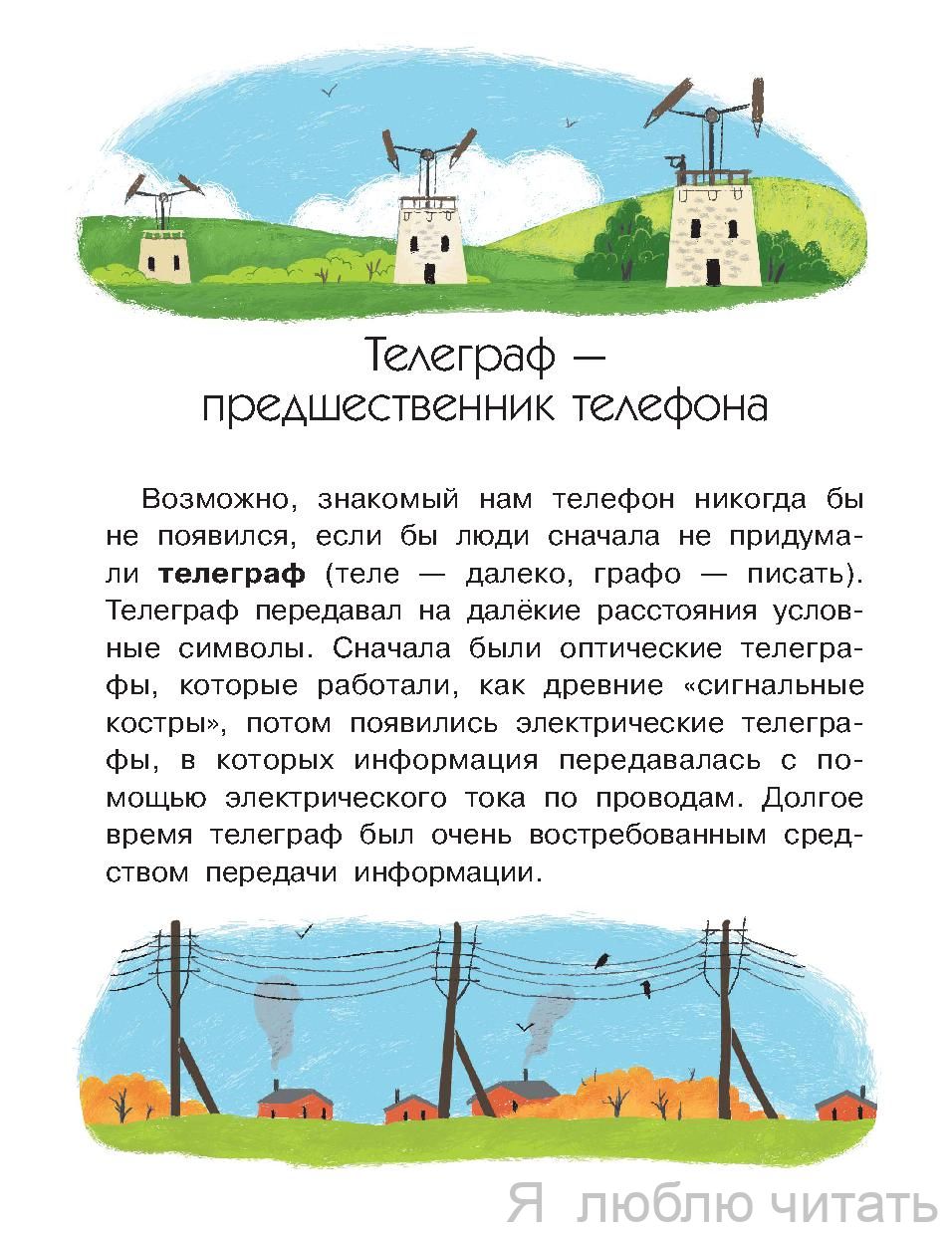 Сейчас сложно представить свою жизнь без мобильного телефона. Каждый день мы звоним, обмениваемся сообщениями или ищем информацию в интернете… Но всегда ли был телефон? Кто его изобрёл? Как передавали сообщения в древности? Почему связь называют "сотовой"? Чем отличаются телефоны разных поколений, что такое LTE, и как работает рация? Обо всём этом расскажет наша книжка.