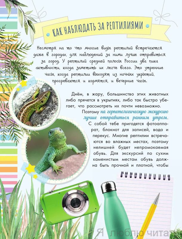 Это познавательная и увлекательная книга в подарок ребенку и взрослому. Вы научитесь определять различные виды рептилий и узнаете больше об их повадках, режиме жизни и среде обитания.